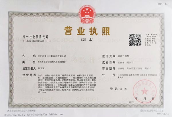 懷仁市中懷生物科技有限公司,我公司坐落于人杰地靈的"煤炭之鄉懷仁市親和鄉清水河村(親和鄉政府西800米處),交通便利。主營業務:生產、銷售:有機肥料(商品有機肥料、有機-無機復混肥料、生物有機肥、其他有機肥料)、微生物肥料(農用微生物菌劑、有機肥料腐熟劑、動物植物肥料、復合微生物肥、其他微生物肥)。